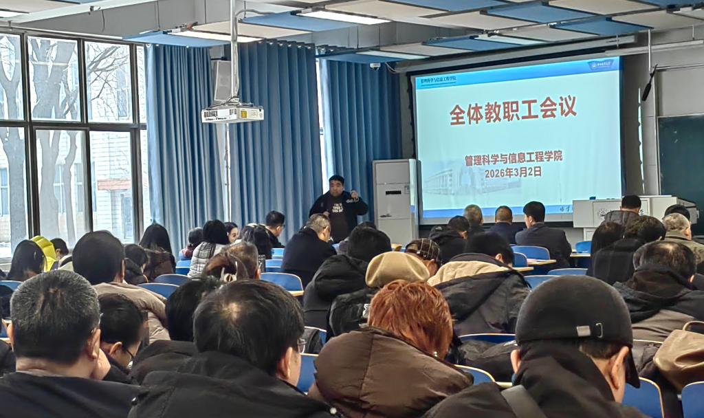 2026-03为强化导师队伍建设,搭建经验交流、互学互鉴的优质平台,3月2日下午,我院在A101教室召开研究生培养经验交流会,会议由副院长王芹鹏主持,全体学院领导和教职工160余人参加。