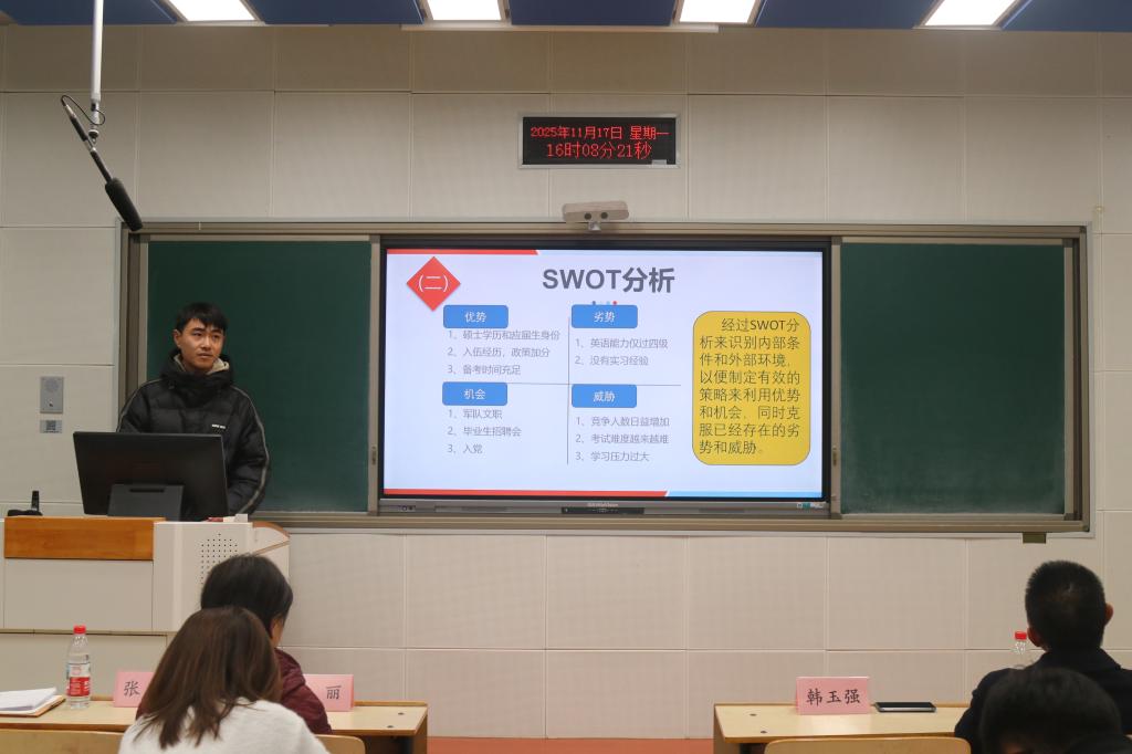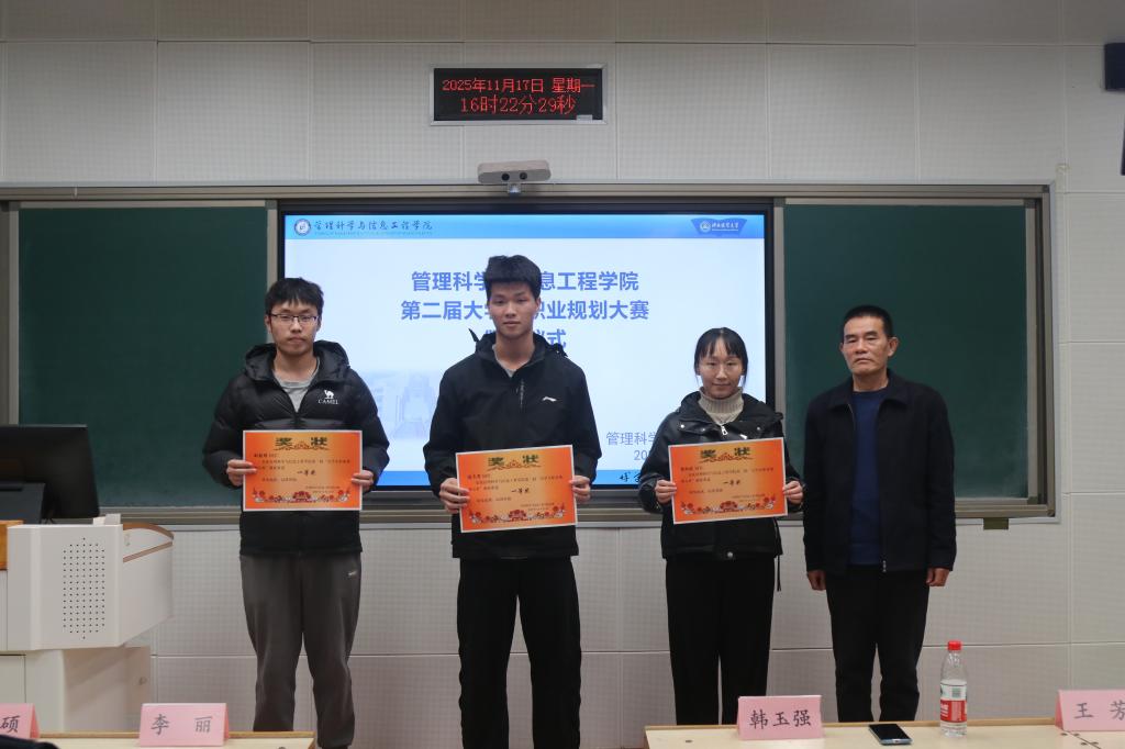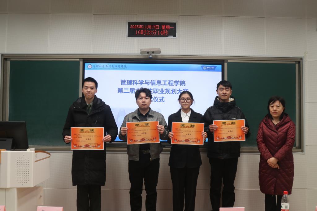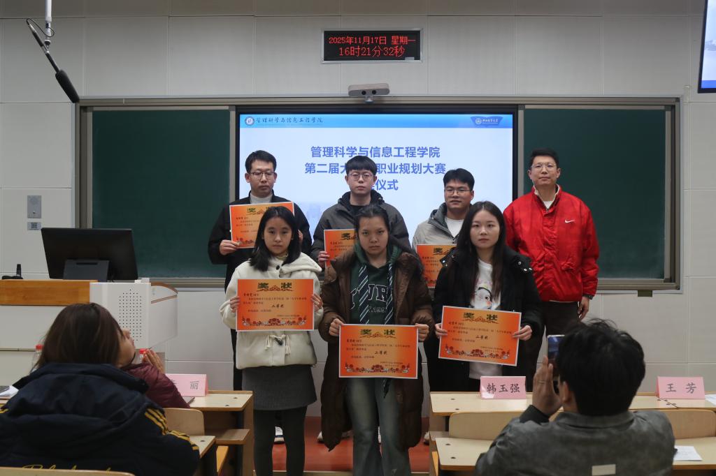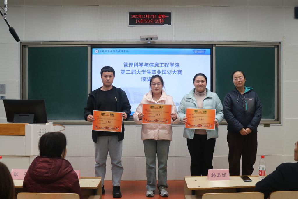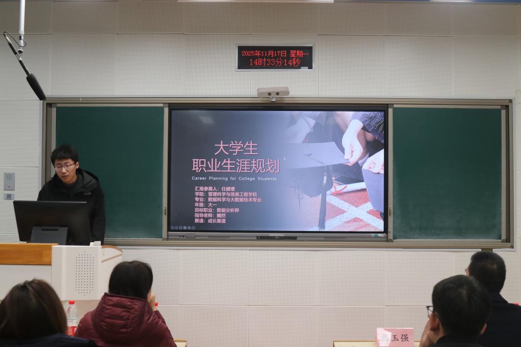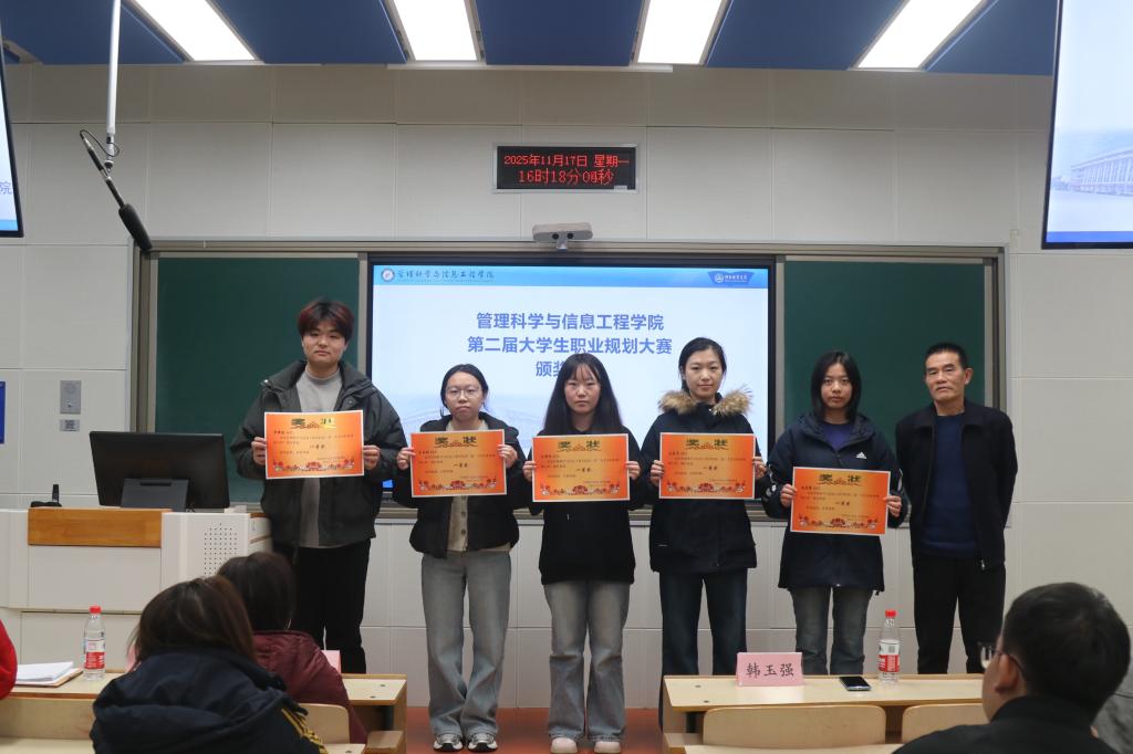 为引导学生科学规划职业发展,提升就业竞争力。11月17日下午,管理科学与信息工程学院在B104举办第二届大学生职业生涯规划大赛。本次比赛由院党委副书记李丽、处级辅导员韩玉强、就业联络员张硕老师、王芳老师担任评委,共同参与评选。